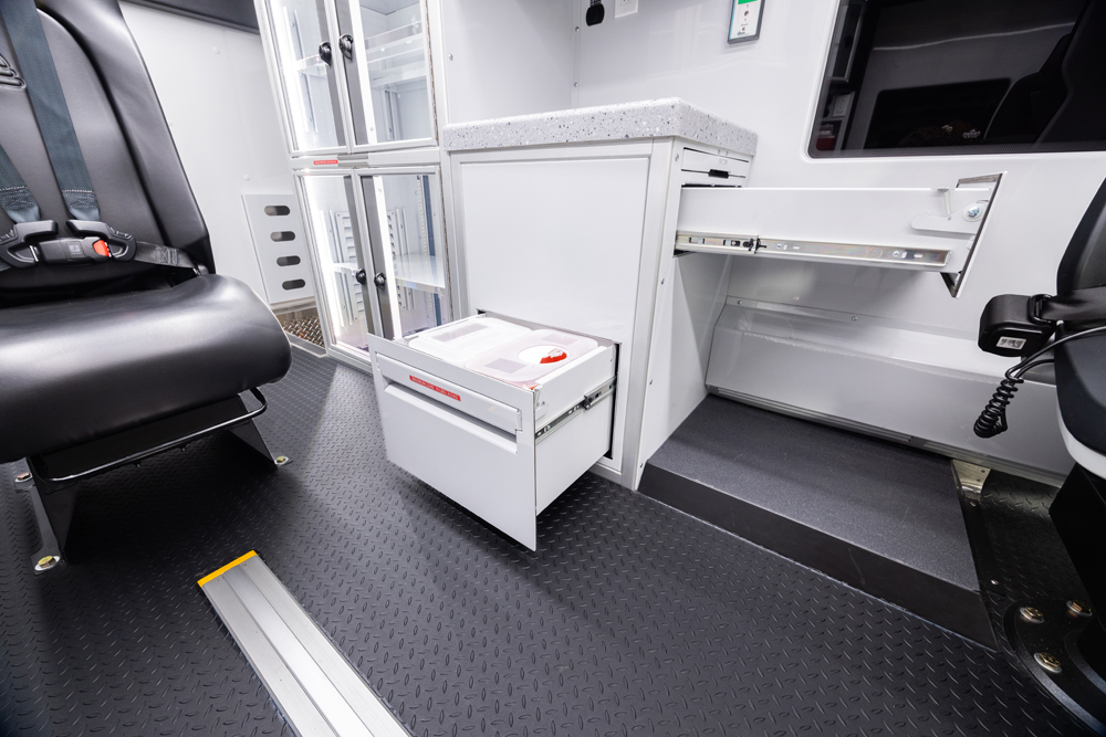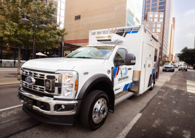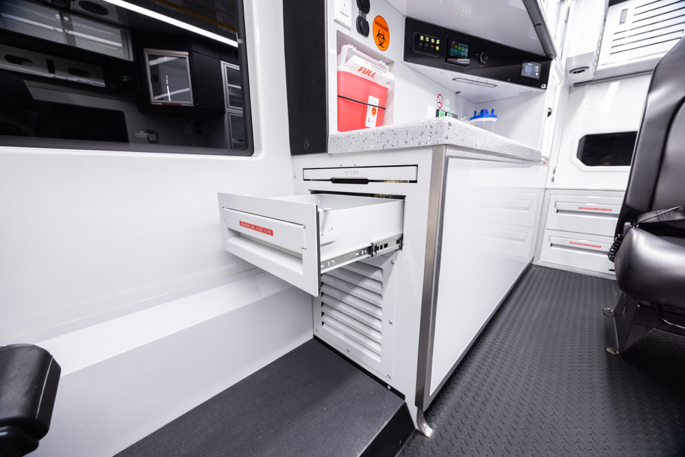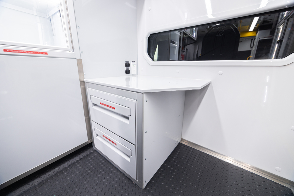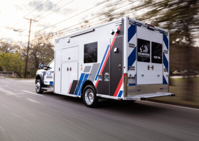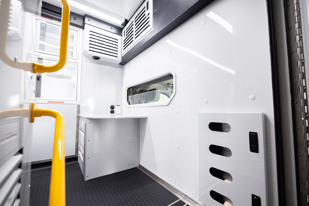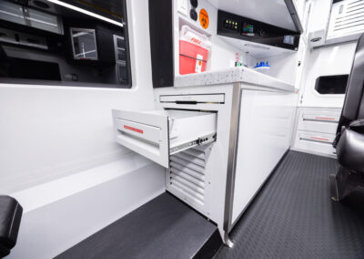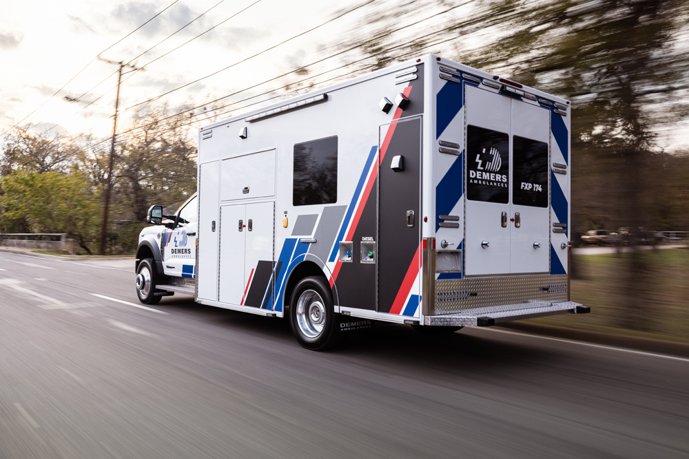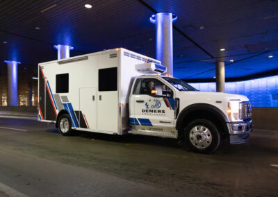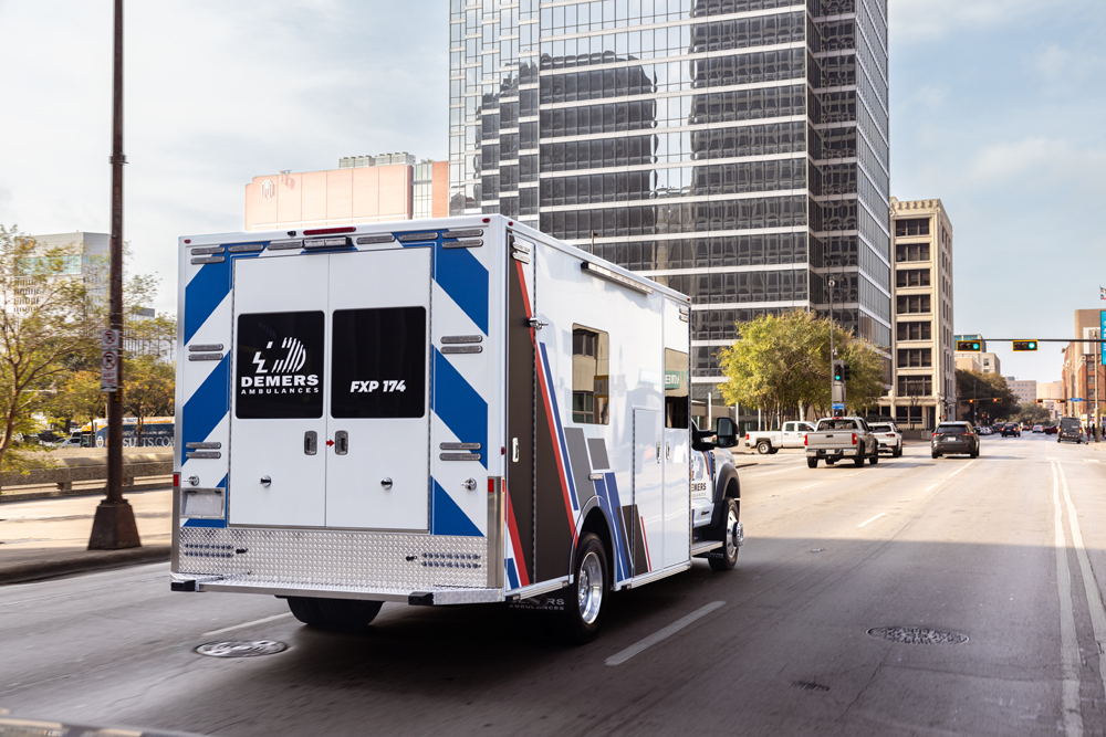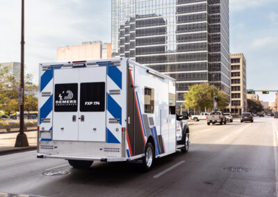 The Demers FXP 174 Type 1 ambulance is an innovative state-of-the-art clinical design, enhancing crew safety and patient outcomes. This unit features a purpose-built ergonomic FX Action™ Seat that revolutionizes EMS safety and patient care with proprietary technology. The Demers FXP 174 module comes with many exclusive standard features, including smart lighting, a dual HVAC ducted system, improved interior storage, taller rear doors, and much more.