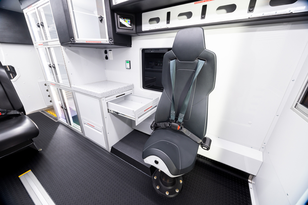 Shaped by extensive EMS field expertise and dealer insights, the Demers FXP 174 Type 1 ambulance optimizes crew safety and comfort through ergonomic design.